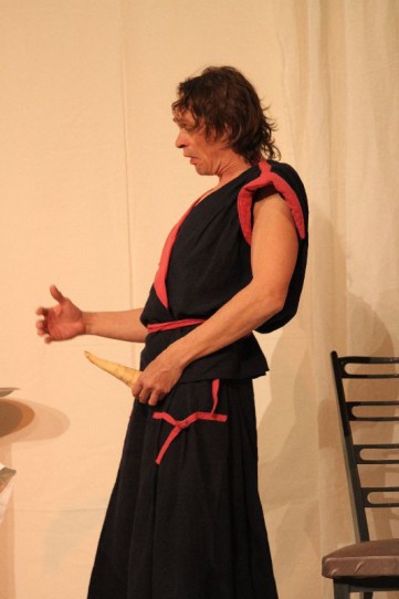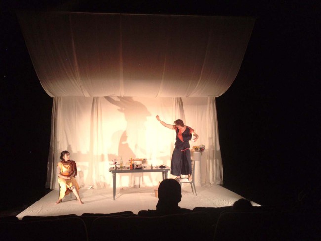 Les deux protagonistes du spectacle, Lysistrata et son mari Mickis, guerrier athénien, vont se mener une joute sans merci .